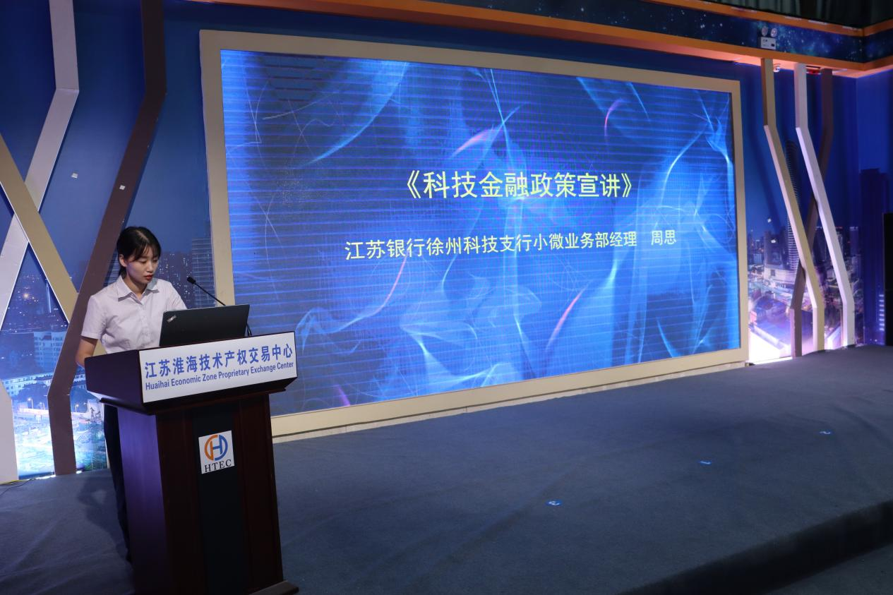 江蘇銀行徐州科技支行小微業(yè)務(wù)部經(jīng)理 周思 向與會(huì )企業(yè)作科技金融惠企政策宣講