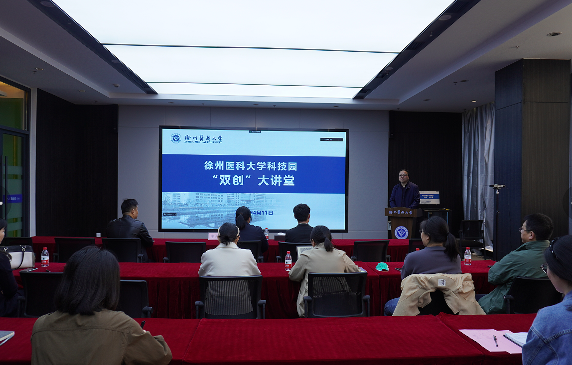 4月10日,徐州醫科大學(xué)科技園“雙創(chuàng )”大講堂在淮海大健康產(chǎn)業(yè)園舉辦,旨在推動(dòng)產(chǎn)學(xué)研用一體化建設,積極推進(jìn)高??萍汲晒D化,服務(wù)地方生物醫藥產(chǎn)業(yè)發(fā)展?;顒?dòng)由徐州醫科大學(xué)資產(chǎn)經(jīng)營(yíng)公司副總經(jīng)理馮文凱主持,20余名醫科大學(xué)年輕教師參會(huì )。